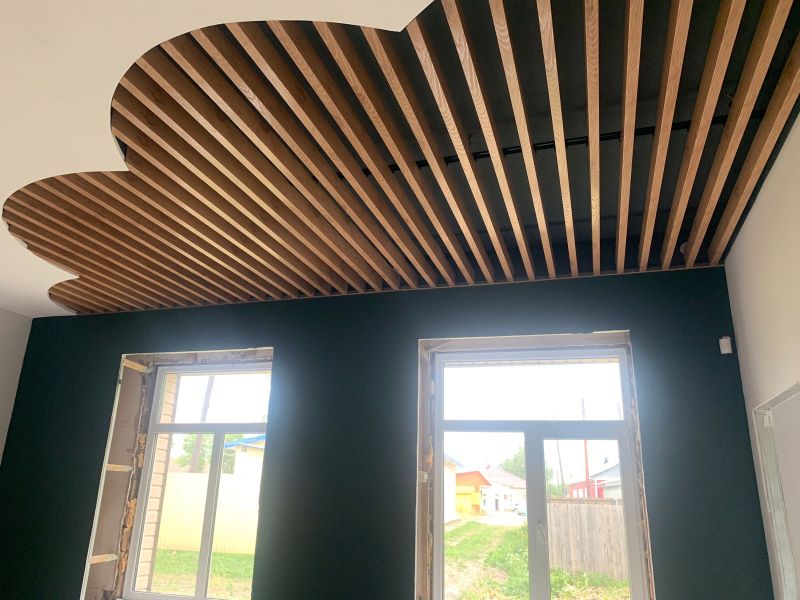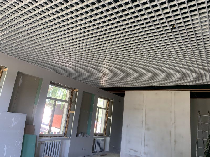 В здании Центральной детской библиотеки продолжается ремонт. Идет монтаж потолков